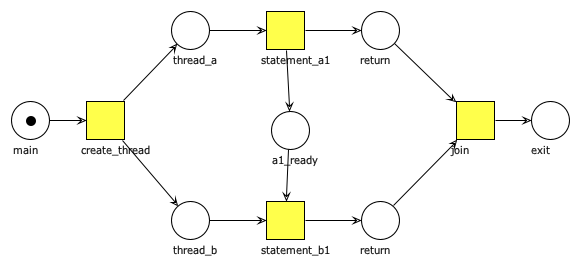 Los hilos de ejecución siguen este esquema, dado que comparten todos los segmentos del proceso (código, datos, y memoria dinámica), excepto el segmento de pila. Por ejemplo, un dato que un hilo escriba en la memoria compartida, otro hilo puede leerlo inmediatamente, sin tener que depender de la intervención del sistema operativo. De esta forma, la memoria compartida se convierte en un mecanismo directo de comunicación entre los hilos de ejecución.